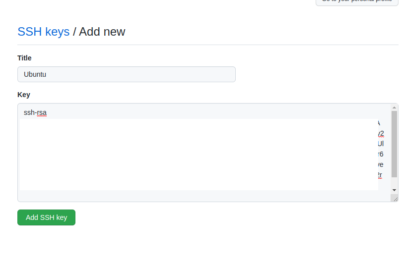 그럼 다음과 같은 화면이 뜨는데 New SSH key를 눌러 title과 공개키를 추가하고 Add SSH key를 눌러줍니다.