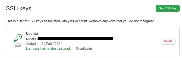 이 과정을 모두 마치면 정상적으로 SSH key가 생성된 것을 확인할 수 있습니다.