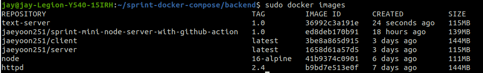 위 과정이 모두 끝나면 아래의 두 명령을 실행해주면 빌드 및 컨테이너 생성이 완료됩니다.