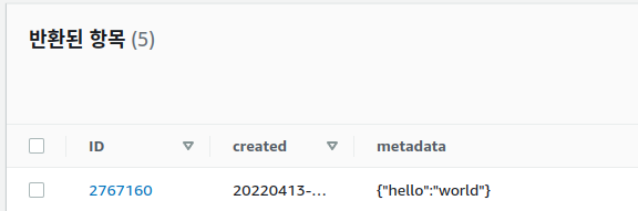 dynamoDB에도 레코드가 정상적으로 추가된 것을 확인할 수 있습니다.