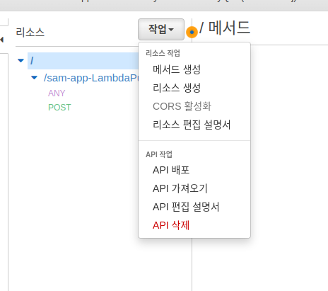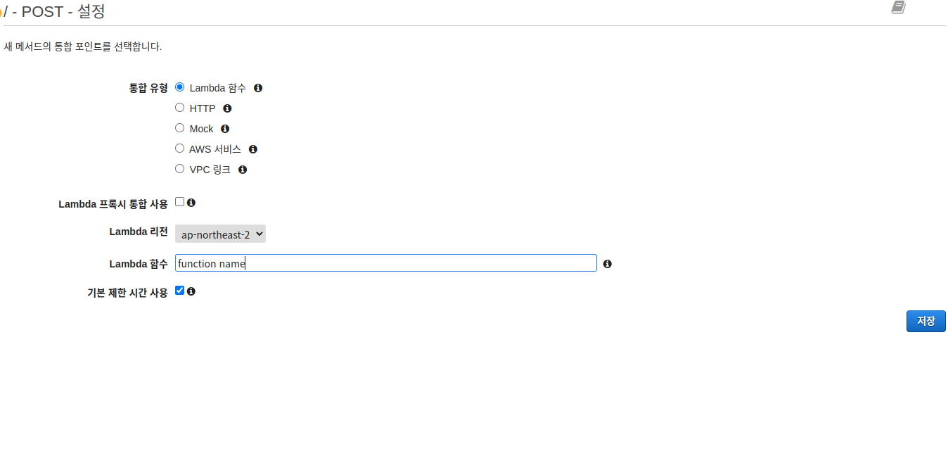 먼저 API gateway의 리소스에서 메서드 생성을 진행하고 POST 선택 후 생성을 진행합니다.