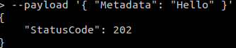 --payload '{ "Metadata": "Hello" }' \ response.json --cli-binary-format raw-in-base64-out