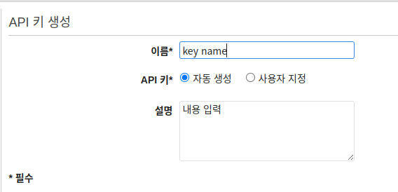 그 다음 API key 생성을 진행해 줍니다.