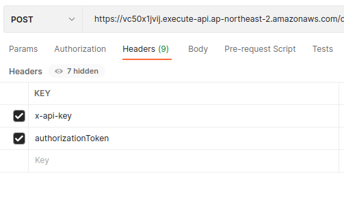 이 과정까지 모두 마치면 API key 키를 이용한 인증 구현이 완료되었습니다. 이 과정 이후 postman등을 이용하여 request header에 x-api-key를 이용하여 POST 요청을 진행하면 정상적으로 수행되는 것을 확인할 수 있습니다.