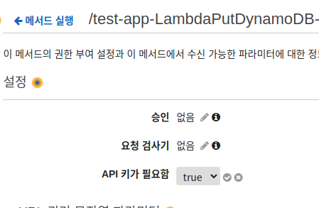 먼저 POST의 메서드 요청에 들어가서 API 키 필요 에 대한 설정을 true로 바꾸어 줍니다.