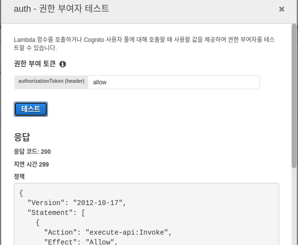 그 다음 테스트를 클릭하고 allow를 입력하여 테스트를 진행해보면 status code가 200이 정상적으로 오는 것을 확인할 수 있습니다.